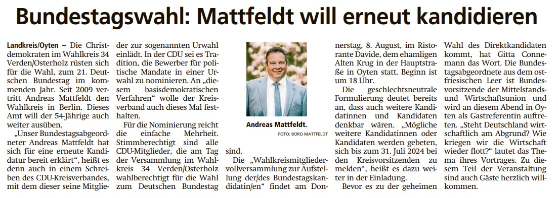 Zwei Platzhirsche, viele Fragezeichen VON HEINRICH KRACKE Verden/Achim – Die Christdemokraten haben es leicht. Andreas Mattfeldt gewann vor drei Jahren ...