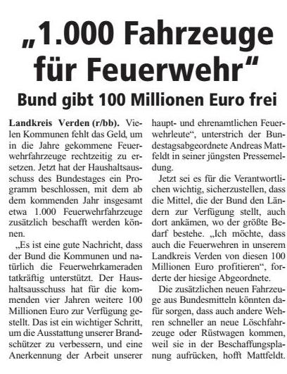 Bund gibt Geld für 1000 neue Feuerwehrfahrzeuge