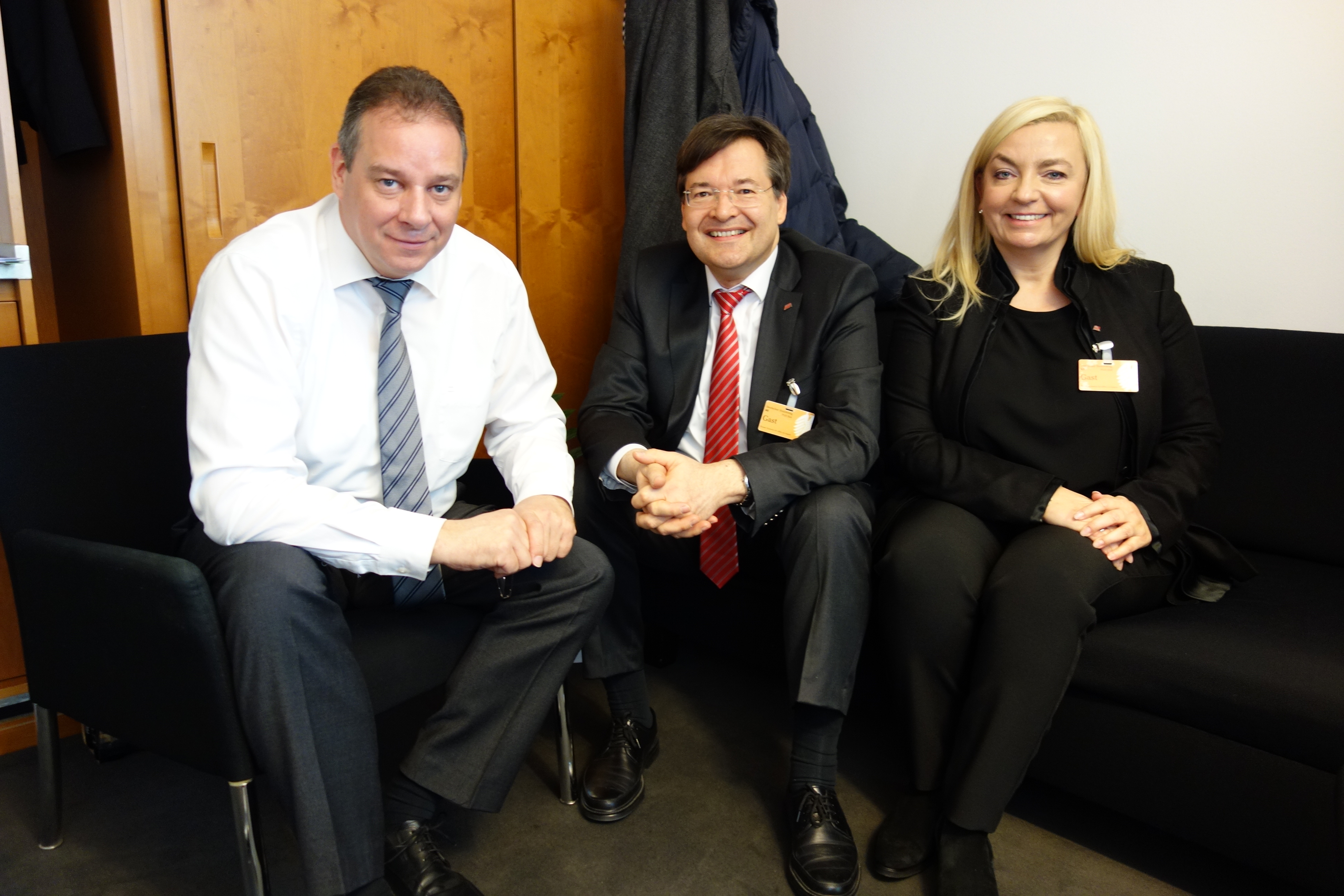 Ich habe mich in Berlin mit dem Präsidenten der Arbeitsgemeinschaft industrieller Forschungsvereinigungen (AiF) – Prof. Dr. Sebastian Bauer – sowie der Geschäftsführerin der AiF – Andrea Weißig – getroffen. Die AiF ist die führende nationale Organisation zur Förderung angewandter Forschung und Entwicklung für den Mittelstand.