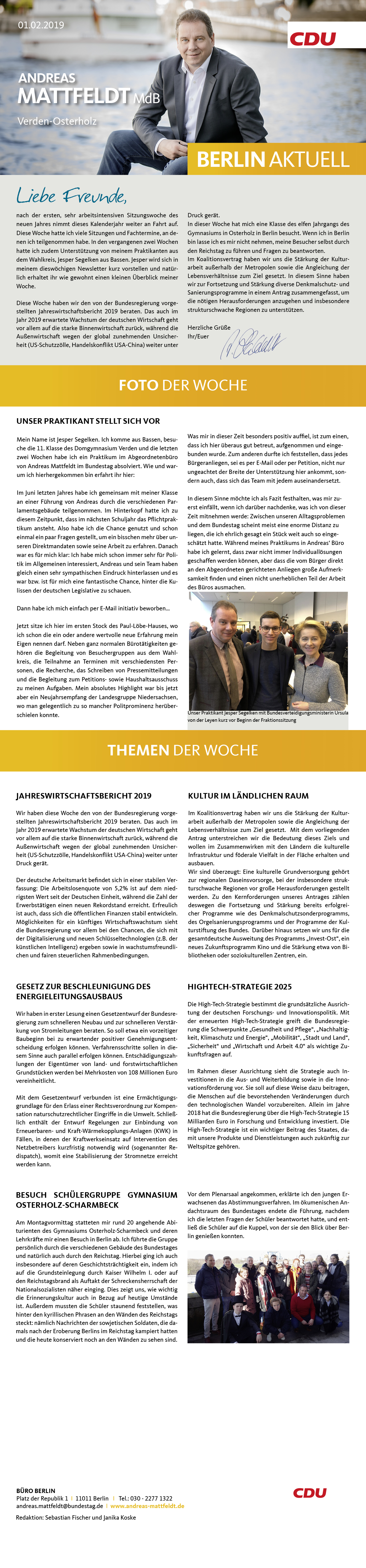 Bundestag aktuell vom 01.02.2019