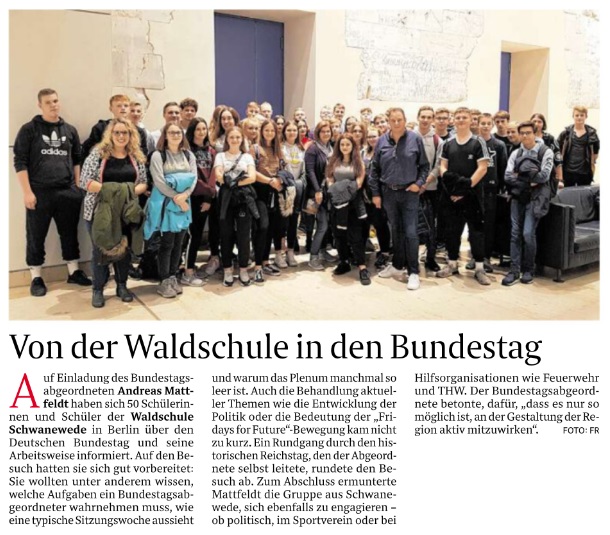 Schwaneweder Waldschüler besuchen den Bundestag