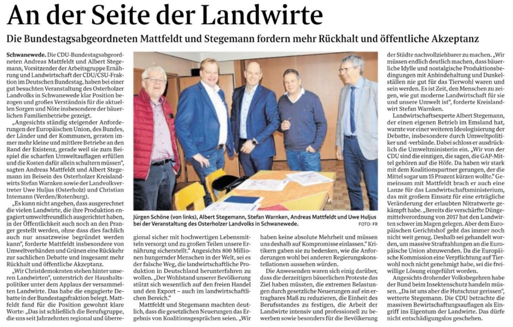 Gemeinsam mit dem Vorsitzenden der Arbeitsgruppe Ernährung und Landwirtschaft der CDU/CSU-Fraktion im Deutschen Bundestag, Albert Stegemann, habe ich bei ...