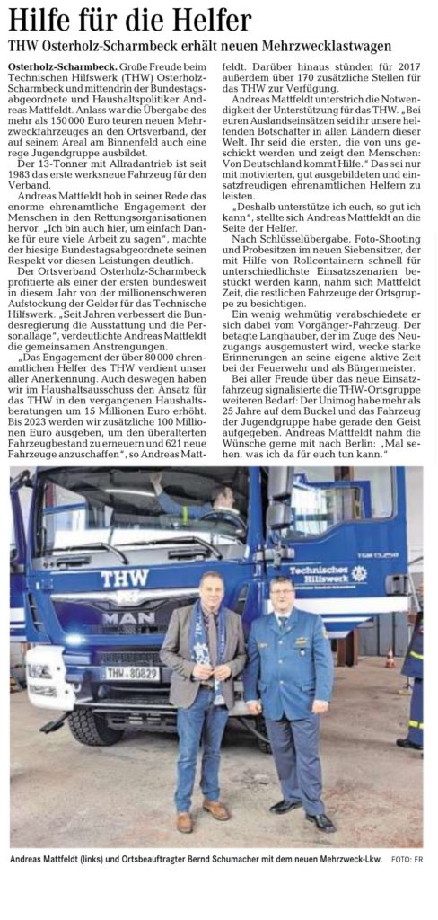 Hilfe für die Helfer – Neues THW-Fahrzeug