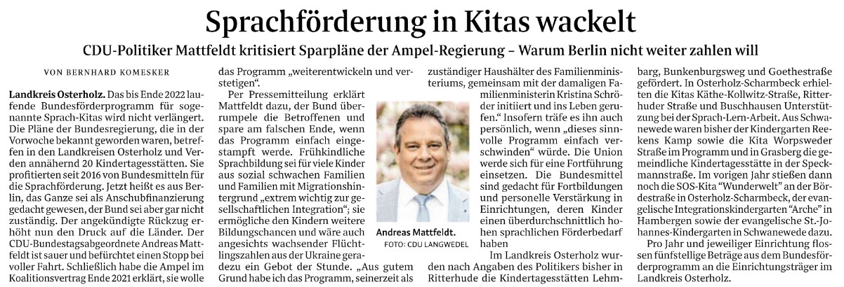 Mattfeldt: Bund überrumpelt die Betroffenen