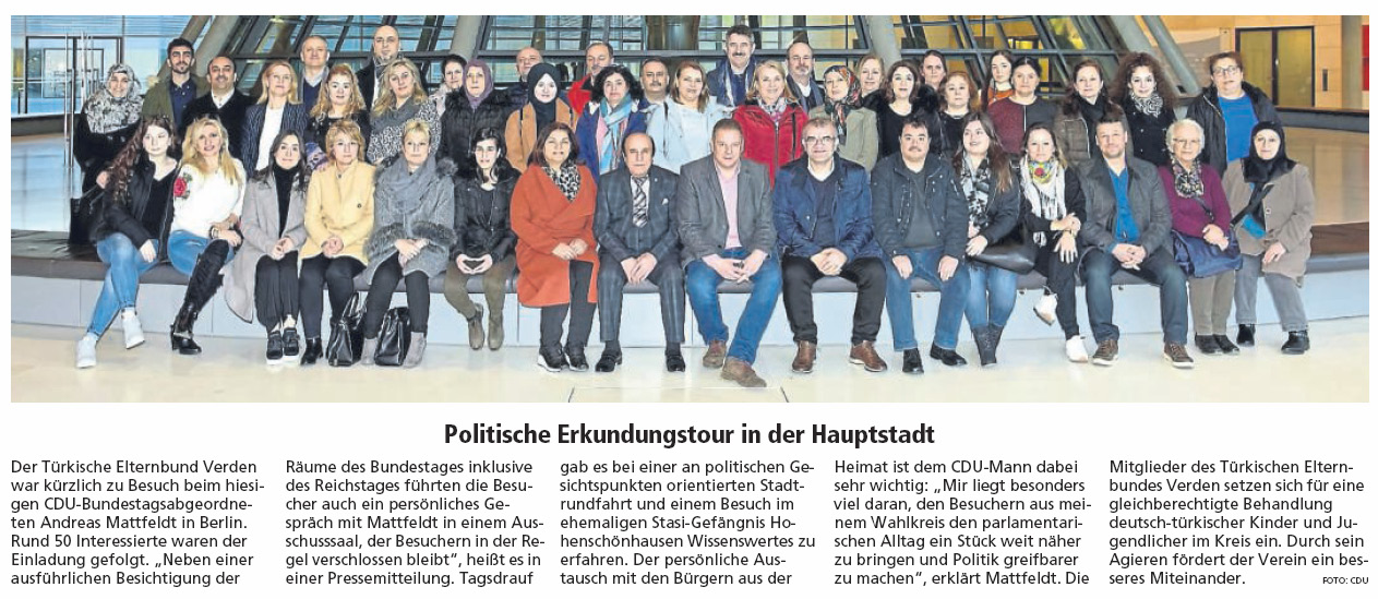 Türkischer Elternverein Verden besucht Mattfeldt in Berlin